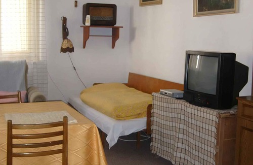 The holiday home is a semi-detached house and furnished in a functional style. The property is located on the outskirts. Also due to the view over woods from the property and its sunny location the domicile is popular. Available for your exclusive use: sun lounger, children's playground, swing, barbecue facilities, garden furniture and campfire site. The internet (WLAN) only works in the garden.LocationKolinec, 700 m above sea level. The holiday home is located on a 400 sqm enclosed garden plot with flowers and shrubs, bordered by a fence. The landlord lives permanently in the house, but uses a seperate entrance. The house is located on the edge of the village and offers a nice view from the plot in the wooded surroundings. Access is directly from the main road (asphalted). Parking is available on the property. Or for 1 car in garage. Specialoven in every room (wood & coal). Local heating.Facilities: children's toys, baby cot, high chair, internet access (WLAN), iron and washing machine. TV reception takes place via satellite. Dogsallowed, EUR 20.00/pet per week. DistancesShopping 1,8 km, restaurant 1,8 km, town center 1,8 km. indoor swimming pool in 16 km. Eurocamp Besiny with shops, restaurant, tennis courts, mini golf, table tennis and outdoor pool 1800 m. Castle Velhartice 5 km. Aquapark in Horazdovice 40 km. Klatovy with the historic town center 16 km. Border crossing Zelezna Ruda 30 km. Aquapark Susice 19 km. In summer: Open air bath 1,8 km in Besiny (beach 1,8 km in Besiny). Swimming pond in Chlistov 4 km. Outdoor swimming pool with refreshment (2 pools and 1 paddling pool) for children in Kolinec 7 km. Aquapark with toboggan and amusement park in Susice 19 km. Good hiking and cycling conditions. In winter: Ski lift 5 km. Ski area 15 km. ski rental, ski school each 15 km. Zelezna Ruda Ski Resort 30 km. DivisionHoliday home, 1 floor, 2 rooms (including 1 bedroom), 100 sqm, in total 5 beds (including 1 additional bed), on request additionally 1 child up to 2 years in a baby cot. RoomThe entrance to your holiday home is located on the ground floor, is at ground level and leads directly into the hallway with doors to all rooms. Bedroom with 1 double bed and 1 additional bed on couch/sofa. Living/bedroom with 2 single beds, sitting area, TV, tiled stove, radio, dining area (5 seats) and (5 chairs). Kitchen with dining area (5 seats), electric stove (2 plates), oven, fridge (180 l, icebox), microwave, coffee machine, toaster and electric kettle. Bathroom with washing machine, shower, WC and window. Terms of lease and pricesIncluded in the priceinternet access, children chair, parking place, water, final cleaning, bed linen, hand towels, Wireless Internet access. Side costs-Costs on the spot:/Obligatory:electricity 0,70 € per kilowatt hour based on usage. local tax by local tariff.Deposit:EUR 150,-/object