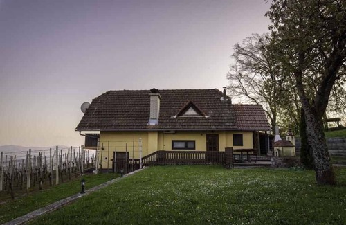 Casa vacacional con excelentes vistas Su alojamiento turísticoLa casa vacacional está rodeada por un abierto terreno de jardín con árboles. El propietario no vive en la casa o en la propiedad. Para uso a su disposición: terraza, césped, tumbona, barbacoa y zona de hogueras. sauna. Su casa vacacional2 plantas, 3 habitaciones (de los cuales 1 dormitorio), 80 m², 6 personas. Aire acondicionado, calefacción central. Entrada en planta baja.Planta baja: Salón con 1 cama doble. Cocina con cocina eléctrica, horno, campana extractora de humos y nevera. Baño con ducha, 1 lavabo, inodoro y lavadora. Primera planta: Dormitorio con 1 cama doble. Salón con 2 camas adicionales en sofá-cama y televisión. Sótano con En el sótano de la casa hay una gran sala de reuniones. En la bodega típica se puede ver dónde se elabora y almacena el vino casero Cviček. Otras instalaciones: acceso de internet y lavadora. En la casa vacacional está prohibido fumar. Animal domésticono se permite. UbicaciónNovo Mesto, barrio Novo mesto. La casa vacacional moderna se encuentra en una soleada en una ladera. El acceso se realiza directamente por la calle principal. Aparcamiento en la propiedad. Compras 7 km, restaurante 7 km, centro de la localidad 7 km. aeropuerto en liubliana 70 km. Novo mesto: discoteca, cine, médico, farmacia, banco respectivamente 7 km. estación de tren 70 km. baño termal, piscina cubierta, sauna respectivamente 8 km en Toplice de Šmarješke. En el veranoposibilidades de baño 8 km en Toplice de Šmarješke. tenis, montar a caballo, pescar, buceo, alquiler de barcos respectivamente 7 km en Novo mesto. golf en Otočec 4 km. En el inviernoTelesquí 33 km en Črmošnjice. (Gače). alquiler de esquís, Pista de esquí a fondo respectivamente 33 km en Gače. Patinar sobre hielo en Novo mesto 7 km. Condiciones y preciosEn el precio incluidoaire acondicionado, estacionamiento, electricidad, agua, limpieza final, ropa de cama, toallas, WLAN acceso de internet. Costes adicionales-Suplementos(Pagable en el momento de la reserva)/póliza de turismo.Costes en el lugar/destino:/A petición:sauna 30 € global por plato.Fianza:ninguna fianza