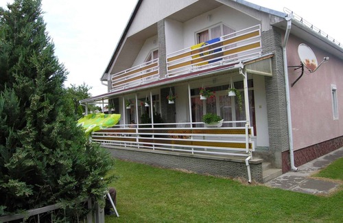 Casa vacacional con jardín y prado Su alojamiento turísticoLa casa vacacional está rodeada por un cerrado terreno de jardín con prado. El propietario no vive en la casa o en la propiedad. El terreno está rodeado de una valla. La otra casa es BAL FEN 008 (5 personas). Para uso a su disposición: terraza, parque infantil, muebles de jardín, columpio de jardín, barbacoa y patio. Su casa vacacional2 plantas, 3 habitaciones (de los cuales 2 dormitorios), 80 m², 5 personas. Salón con rincón para sentarse, televisión y acceso a la terraza (muebles de jardín). Cocina con zona de comedor (5 plazas), cocina de gas (4 fuegos), horno, nevera (congelador), microonda y cafetera. Baño con bañera y 1 lavabo. Dormitorio con 1 cama doble, 1 cama adicional (solamente apto para niños) y acceso al balcón. Dormitorio con 2 camas individuales. Wáter separado con 1 lavabo y inodoro.Recepción televisiva vía satélite. Animal domésticono se permite. UbicaciónBalatonfenyves. La casa vacacional se encuentra en una casa pareada y en una tranquila ubicación. El acceso se realiza por una calle secundaria (asfaltado). Aparcamiento en la propiedad (para 1 coche). Compras 500 m, restaurante 600 m, centro de la localidad 800 m. En el veranoBalaton con playa 600 m en Balatonfenyves (playa 600 m en Balatonfenyves). Condiciones y preciosEn el precio incluidoestacionamiento, electricidad, agua, limpieza final, ropa de cama. Costes adicionales-Suplementos(Pagable en el momento de la reserva)/póliza de turismo.Fianza:150 Euro