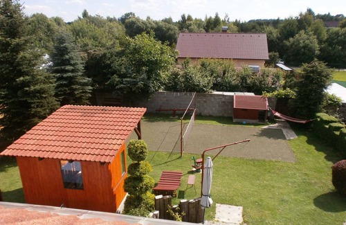Casa vacacional con piscina, cama elástica, minigolf y pista de tenis Se encuentra en Skrdlovice. Casa vacacional con piscina, cama elástica, minigolf y pista de tenis ofrece alojamiento, con Piscina privada, Balcón/Terraza, Internet, Entre otras comodidades. Estas características Casa Piscina privada, Balcón/Terraza, Internet, Para que su estadía sea cómoda.