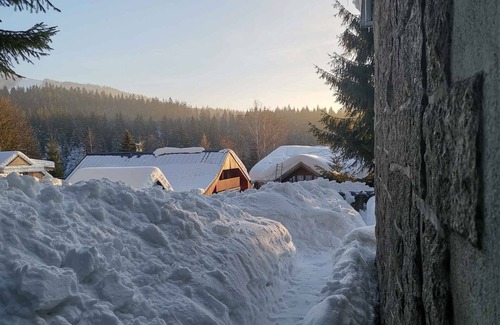 Casa vacacional en el bosque con veranda Se encuentra en Harrachov. Casa vacacional en el bosque con veranda ofrece alojamiento, con Estacionamiento, Mascota amigable, Balcón/Terraza, Entre otras comodidades. Estas características Casa Estacionamiento, Mascota amigable, Balcón/Terraza, Para que su estadía sea cómoda.