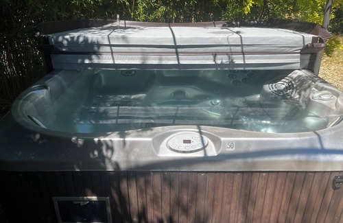Spa bañera Jacuzzi 4.5 literas incluyendo una forma alargada con luces LED y altavoces integrados ; El Spa está ubicado fuera para disfrutar del cielo estrellado