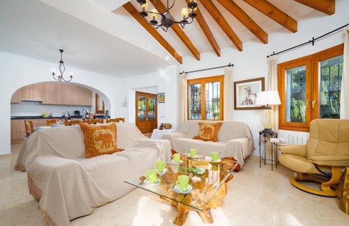 Lovely and comfortable luxury villa with private pool in Javea, on the Costa Blanca, Spain for 8 persons. The villa is situated in a coastal, hilly, wooded and residential area. The luxury villa has 4 bedrooms and 3 bathrooms, spread over 2 levels. The accommodation offers privacy, a beautiful lawned garden with gravel and trees, a beautiful pool, wonderful views of the mountains and beautiful views of the valley. Its comfort and the vicinity of the beach, sports activities, sights and culture make this a fine luxury villa to spend your holidays in Spain with family or friends and even your pets.
