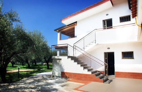 El edificio, rodeado de un verde olivar, lejos del mar a menos de 500 metros de las playas de arena blanca de Santa María y Grotticelle, el más famoso de la Costa degli Dei.