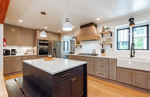 ¡Experimenta lo último en lujo de montaña en Castle off the Shore! Bordes limpios, texturas naturales y elegantes muebles para el hogar trabajan en conjunto para crear un entorno incomparable, garantizado para elevar sus vacaciones en Deep Creek al próximo nivel. ¡Este exquisito hogar es realmente una obra maestra del diseño moderno! Cada habitación revela nuevos toques de clase y lujo con comodidades extravagantes en cada esquina. En la gran sala, disfrute de la arquitectura brillante y expansiva, dominada por altos techos y ventanas brillantes, mientras se reúne con familiares y amigos para pasar las noches junto a la chimenea y las mañanas cenando juntos a lo largo de la elegante mesa del comedor. El nivel principal cuenta con tres impresionantes chimeneas de piedra: una en el salón, otra en el comedor y otra en la sala de recreación de la casa. En otra parte del nivel de correo, el porche cerrado de la casa es una característica sobresaliente, que incluye asientos de bar y mesa de futbolín. Al caminar por la casa, el diseño moderno de mediados de siglo de la casa, el minimalismo exclusivo y piezas de arte interesantes mantienen el ambiente divertido y fresco. ¡Esta casa es un placer explorar! Además, con servicios centrados en el entretenimiento, como un bar, juegos de mesa y tablas de maíz, siempre hay un millón de cosas divertidas que hacer aquí.