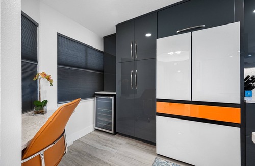 ~ Kitchen: Fully loaded with top-of-the-line appliances, stocked barware, and a wine fridge