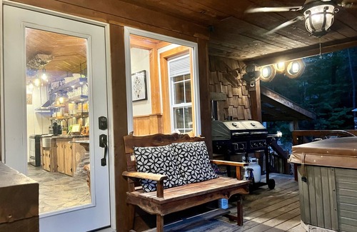 La cabaña de Cedar Springs, ubicada en las afueras de la hermosa Hot Springs, Arkansas, es una experiencia única y única. Esta estructura bellamente diseñada es rústica, pero moderna. Más de 160 elementos diferentes de la cabina han sido hechos a mano, agregando detalles personales únicos a su atractivo ya acogedor. La cabaña está convenientemente ubicada a solo diez minutos de la famosa Bathhouse Row en el centro de Hot Springs y también a diez minutos de Hot Springs Village, que cuenta con hermosos lagos y nueve campos de golf. Como invitados en la cabaña de Cedar Springs, usted es libre de recorrer los 4 acres de tierra adjuntos a la propiedad. La cabina presenta una miríada de características hechas a mano, que incluyen una cama de arriba "flotante"; una cama abatible al aire libre con altavoces bluetooth, ventilador, calentadores y estación de carga del teléfono; una chimenea al aire libre de 13 pies de largo; una casa de juegos para niños con loft y una enorme mesa de trabajo; un tipi de vigas de cedro de 22 pies de altura; una cocina al aire libre, con parrilla de carbón y mesa de picnic de cedro extendida; un área de juego al aire libre completamente cargada, que incluye Jenga gigante, herraduras, bola de tether, cornhole y lanzamiento de anillos; Y una sala de teatro "autobús enterrado" con sonido envolvente y pantalla grande 4K. ¡Usted tiene que verlo para creerlo! Ven a vernos!