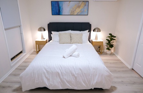 Experience the perfect holiday at our 5-bedroom beach and lakeside retreat! New and spaciously furnished for ultimate comfort, our family-friendly haven is minutes away from the lake and a short drive from the beach. Savor BBQ delights on the patio, swim, or paddleboard by day, and unwind in spacious bedrooms by night. Book now for a dreamy escape!