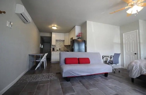Al instalarte en este alojamiento de 1 dormitorio y 1 baño, encontrarás aire acondicionado, escritorio y oficinas. Conéctate al wifi gratis, o relájate frente a un Smart TV. El cuarto de baño incluye un secador de pelo, toallas y papel higiénico. La cocina está equipada con placa de cocina y frigorífico, además de cafetera y tetera, microondas y utensilios de cocina. Y como podrás aprovechar la lavadora y la secadora, no te hará falta llevar mucho equipaje. Otras comodidades incluyen ropa de cama, una tabla de planchar, calefacción y una silla de oficina.