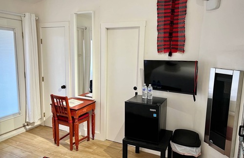 Relájate en el porche o patio hawaiano, que dispone de servicios como los muebles de exterior, o tómate algo en el brasero de jardín de este apartamento de 19 m². Para cambiar un poco, entra y disfruta del wifi gratis y de la televisión.