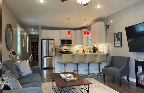 Este alojamiento de 2 dormitorios y 1 baño cuenta con una sala de estar, aire acondicionado y escritorio. El cuarto de baño incluye un secador de pelo, toallas y papel higiénico. Prepara una comida casera en la cocina, equipada con horno, placa de cocina y frigorífico, además de cafetera y tetera, hervidor eléctrico y máquina de hielo. Podrás viajar con poco equipaje, porque tendrás una lavadora y una secadora a tu disposición.