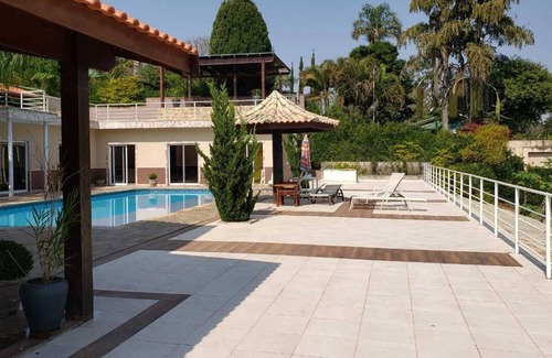 excelente chácara próxima sp en un cond. cerrada con seguridad 24 horas, Super Nova, con 7 habitaciones y 5 suites (5/4 casa principal y 2/4 parte), infraestructura óptima con barbacoa y casa independiente conzinhas, piscina para adultos con zona infantil y un quiosco, sala de juegos, campo fútbol, el fuego de tierra (gaucho barbacoa), bella vista, maravilloso lugar para sus vacaciones, fines de semana con amigos y familiares, grandes muebles y colchones se sientan cómodamente instalados. Ideal para cumpleaños eventos / bodas / talleres / reuniones de negocios.