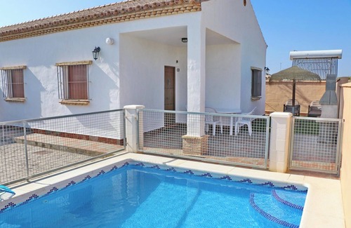Chalet de alquiler independiente con piscina privada, con porche cubierto y al descubierto, situada a menos de seis minutos en coche de las calas de Roche.