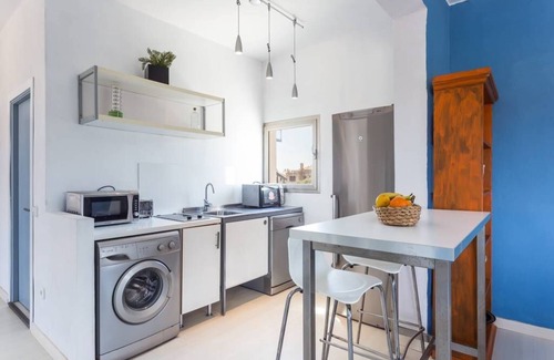 Cocina abierta totalmente equipada con salida a la terraza que conduce a la piscina, 3 dormitorios dobles y 2 baños (1 en suite).