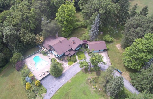 El chalet construido en 1915 se encuentra en una finca privada de 100 acres rodeada de zonas boscosas con senderos para caminar y caminar. El chalet con más de 20 habitaciones, duerme 16 con 6 dormitorios y 4. 5 baños, cocina completa, porche, 2 balcones.