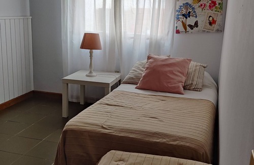 Un dormitorio con una cama doble de 2x1,50 metros, otro dormitorio con cama doble de 2x1,40 metros, el tercer dormitorio con cama individual de 1,85x0,90 metros y otra cama plegable. Además en el salón hay un sofa.