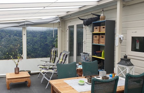 En el borde de Veluwe se encuentra el pueblo de Wolfheze, donde se encuentra nuestro hermoso chalet en el parque del chalet Lindenhof. El chalet tiene un jardín protegido orientado al sur. Alrededor del chalet y el jardín hay un seto alto y dos puertas de acceso, de modo que todo está protegido, ideal para niños pequeños. El chalet está equipado con un gran porche con techo de vidrio y ventanas de plástico que lo cubren, de modo que rápidamente se calienta en el porche cuando brilla el sol. Plaza de parking propia al lado del chalet.