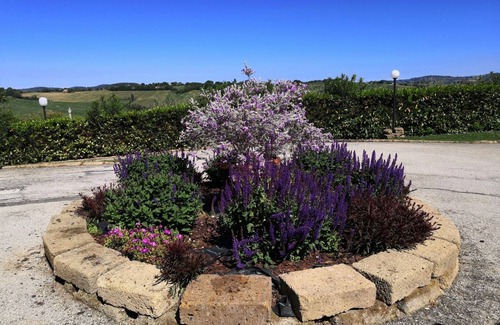 Situado en las colinas en la frontera entre Las Marcas y Romaña, a 3 km de la salida de la autopista A14 y a 12 km del mar de Pesaro o Cattolica.