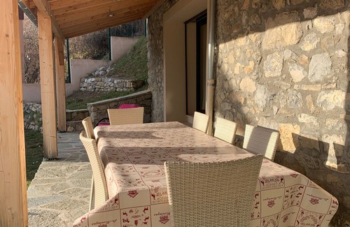 It consists of a large kitchen and living room on the ground floor both overlooking the garden and the terrace for the delight of children who will be happy to be able to make pretty snowmen in winter or a game of balloon summer ...