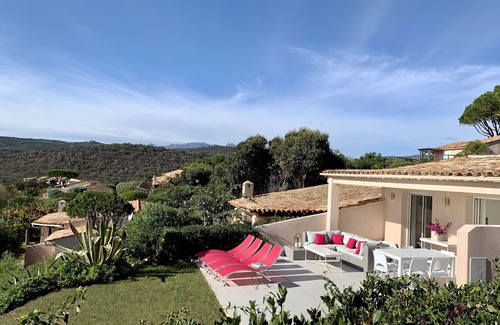 Hermosas vistas panorámicas de la laguna y la playa de Santa Giulia y la sierra de Ospedale, superficie de 60 m2 Con un jardín de 200 m2.