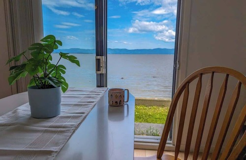 Casa de vacaciones a orillas del agua con cocina y balcón