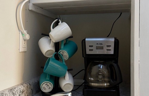 La cocina básica está equipada con frigorífico, además de cafetera y tetera, microondas y utensilios de cocina. Disfruta del wifi gratis y de la televisión. Y como hay una lavandería en los alrededores, no necesitarás llevarte mucho equipaje. Otras comodidades de este alojamiento de 1 dormitorio y 1 baño incluyen ropa de cama, una tabla de planchar, aire acondicionado y una mesa de comedor.