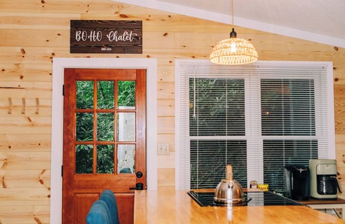 Charming 2-bedroom Boho Chalet with AC and WiFi in Blowing Rock Se encuentra en Boone. Charming 2-bedroom Boho Chalet with AC and WiFi in Blowing Rock ofrece alojamiento, con Estacionamiento, Servicios de invitado, Niño amigable, Entre otras comodidades. Estas características Chalet de esquí Estacionamiento, Servicios de invitado, Niño amigable, Para que su estadía sea cómoda.