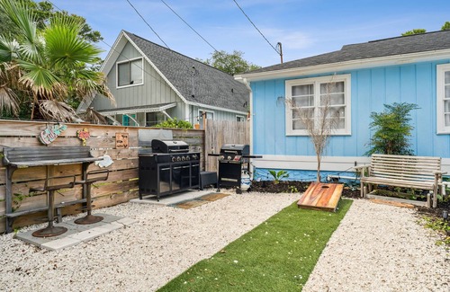 The Blue Marlin is a quaint little beach cottage less than a half mile walk to white sand beaches. The front yard has a tiki deck, a grilling area, a small bar area, cornhole and a picnic table all surrounded by beautiful tropical landscaping.