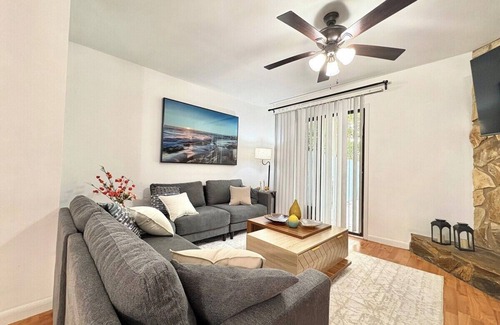 Este alojamiento de 2 dormitorios y 2.5 baños cuenta con una zona para barbacoas, chimenea y aire acondicionado. Conéctate al wifi, o relájate frente a un Smart TV. El cuarto de baño incluye un secador de pelo, toallas y papel higiénico. Y como podrás aprovechar la lavadora y la secadora, no te hará falta llevar mucho equipaje. Otras comodidades incluyen una tabla de planchar y calefacción.