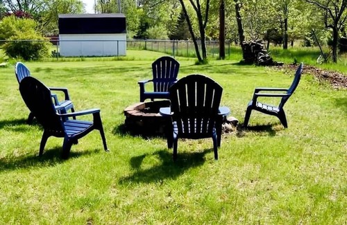 Looking for the ideal Michigan vacation? Located on Hull island in a relaxed neighborhood in downtown Oscoda you can walk to the beach on Lake Huron or float down the Ausable River. Grill outside while the kids run around the big back yard or cook in the fully stocked kitchen. Enjoy a fire next to the forest or cool off in the AC and enjoy movies and games in big comfy living room and dining room. There’s tons of space for the whole family.