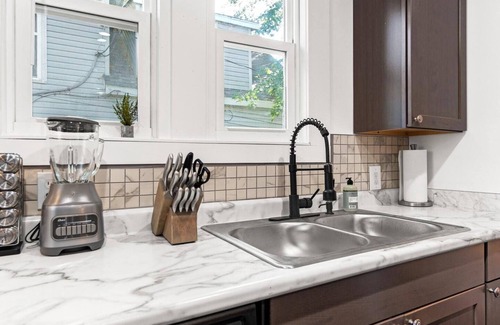 Fully remodeled building, high end, large one bedroom apartment with a private entrance. This unit features tall ceilings, an upscale kitchen, smart TV, high speed wifi, coin laundry facility on site, very comfy queen sized bed, and work desk w/ wireless charging. Property has a large backyard, with off street parking security cameras, and keyless code entry!
