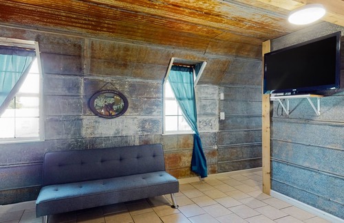 Inside, you'll enjoy a quaint and cozy space. Indulge in a movie marathon on the large TV while resting on the sofa, or prepare a grand meal in the kitchenette, with a fridge, microwave, stovetop oven range, and coffee maker. Get a comfortable night's rest in the soft bed outfitted with luxe linens, or on the futon for extra room.