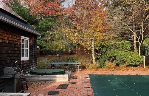 Charming Hamptons Cape Cod - Pool, Hot Tub, Close to Harbor/Bay Beaches Se encuentra en Northwest Harbor. Charming Hamptons Cape Cod - Pool, Hot Tub, Close to Harbor/Bay Beaches ofrece alojamiento, con Aire acondicionado, Seguridad, Ropa de cama/Ropa de cama, Entre otras comodidades. Estas características Cabaña Aire acondicionado, Seguridad, Ropa de cama/Ropa de cama, Para que su estadía sea cómoda.