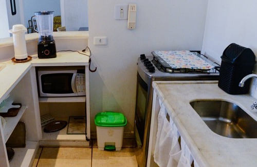 - La cocina está equipada con diversos utensilios, incluidos cocina, horno, nevera, microondas y licuadora (excepto sal, pimienta y aceite)
