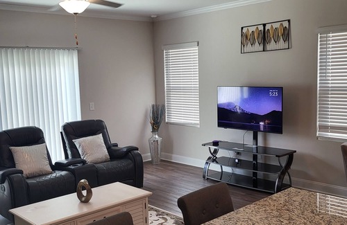 Este alojamiento de 3 dormitorios y 2.5 baños cuenta con una sala de estar, un comedor, aire acondicionado y escritorio. Disfruta del wifi gratis y de la televisión. El cuarto de baño incluye un secador de pelo, toallas y papel higiénico. La cocina está equipada con horno, placa de cocina y frigorífico, además de cafetera y tetera, hervidor eléctrico y máquina de hielo. Podrás viajar con poco equipaje, porque tendrás una lavadora y una secadora a tu disposición. Otras comodidades incluyen una tabla de planchar, calefacción, una silla de oficina y una mesa de comedor.