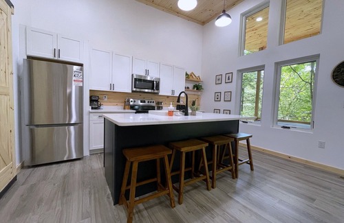 Chic 2-bed modern cabin in a magical forest - Hot Tub, Swinging Bed, AC, & WiFi Se encuentra en Campton. Chic 2-bed modern cabin in a magical forest - Hot Tub, Swinging Bed, AC, & WiFi ofrece alojamiento, con Estacionamiento, Balcón/Terraza, Instalaciones de bienestar, Entre otras comodidades. Estas características Cabina Estacionamiento, Balcón/Terraza, Instalaciones de bienestar, Para que su estadía sea cómoda.