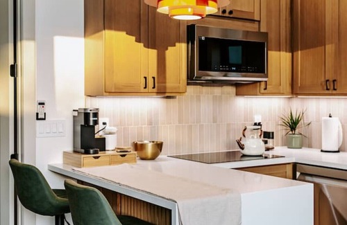 Este alojamiento de 1 dormitorio y 1 baño cuenta con una sala de estar, una zona para barbacoas, aire acondicionado y escritorio. El cuarto de baño incluye un secador de pelo y toallas. La cocina está equipada con placa de cocina, frigorífico y lavavajillas, además de cafetera y tetera, máquina de hielo y microondas. Y no tendrás que llevarte ropa de más, porque podrás aprovechar la lavadora y la secadora.
