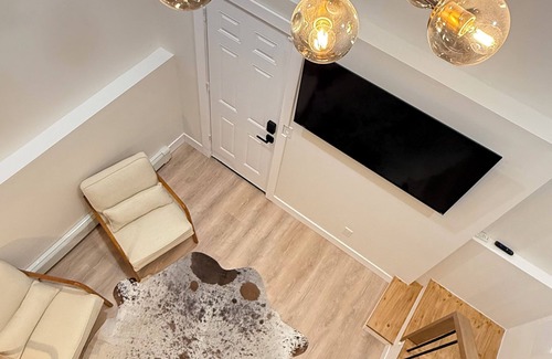 Step into our beautifully transformed garage apartment. A modern and cozy space perfect for solo travelers, couples, or business guests. Studio features a stylish interior, a comfortable sleeping loft, a full kitchen, and a sleek bathroom, making it a relaxing home away from home. Nestled in a peaceful neighborhood with easy access to local shops, dining, and major highways, it offers the ideal blend of comfort and convenience.