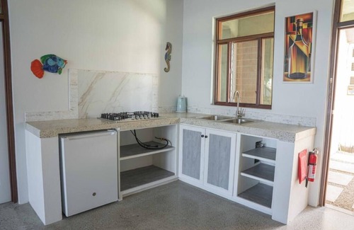 La cocina está equipada con frigorífico y microondas. El cuarto de baño incluye un secador de pelo, toallas y papel higiénico. Otras comodidades incluyen ropa de cama y una tabla de planchar.