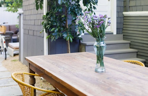 Este 2 dormitorios 1910 casa es de nueva casa renovado y maravillosamente decorado. HD TV en cada dormitorio y salón, maravillosa decoración, cómodas camas y ropa de cama de lujo, y mobiliario, 2 fuera de la calle plazas de aparcamiento, que es un lujo para el centro de SB, 3 cuadras de State St, Wifi, chimenea de gas, aire acondicionado central y el calor , patio privado, patio trasero con comedor al aire libre, parrilla de gas y mucho más ....