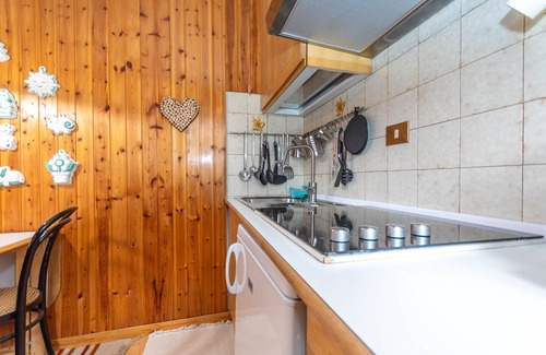 Step inside and let yourself be enveloped by the homey atmosphere of this accommodation. The living area greets you with its open space, where the kitchen and dining area harmoniously blend with a relaxation area, complete with a comfortable double sofa bed. It’s the perfect place to retreat after a day in the mountains, to share stories, or to sip a steaming cup of tea.