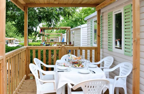 "Happy Premium", 4 estancias mobile home 30 m2. Con mobiliario confortable: salón-dormitorio con mesa de comedor, calefacción eléctrica y aire acondicionado. 1 dorm. con 1 cama de matrimonio (140 cm, 190 cm de longitud). 2 dorm cada habitación con 2 camas (70 cm, 190 cm de longitud). Cocina abierta (4 fogones, microondas, congelador, cafetera eléctrica). Ducha/WC. Aire acondicionado (extra). Terraza parcialmente cubierta. Muebles de terraza, barbacoa eléctrica (portátil), tumbonas (2). El alojamiento dispone de: mosquitera. Plaza de aparcamiento (1 coche). A tener en cuenta: apartamento para no fumadores. IT023006B143AX8QZE