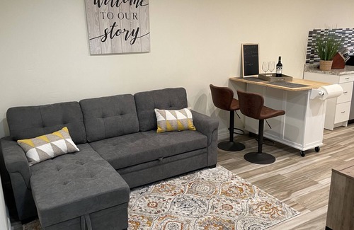 Este alojamiento de 1 dormitorio y 1 baño cuenta con un sofá cama y aire acondicionado. Conéctate al wifi, o relájate frente a un Smart TV. El cuarto de baño incluye papel higiénico y jabón. Para tu comodidad, encontrarás tostadora, licuadora y papel de cocina. Y como podrás aprovechar la lavadora y la secadora, no te hará falta llevar mucho equipaje.