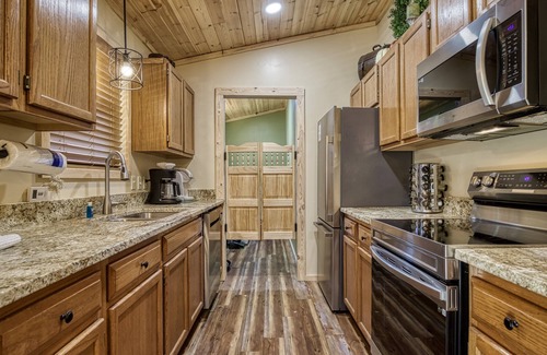 Al instalarte en este alojamiento de 2 dormitorios y 2 baños, encontrarás barbacoas de gas, chimenea y aire acondicionado. También puedes utilizar la ducha con efecto lluvia, además de otras comodidades como toallas y un secador de pelo. La cocina está equipada con horno, placa de cocina y frigorífico, además de cafetera y tetera, máquina de hielo y microondas. Y como podrás aprovechar la lavadora y la secadora, no te hará falta llevar mucho equipaje.