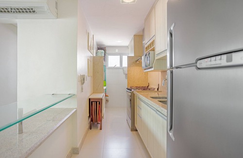 O apê possui 1 lindo cuarto confortable y climatizado con acceso a varanda; As salas de estar e jantar são arejadas e possuem acomodação para todos os hóspedes, proporcionando conforto; ¡Una cocina completa con todos los elementos esenciales para su uso y una vista sensacional de la región!