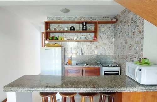 Beautiful apartment (AP35) in a condominium on the beach in Arembepe! Quiet location with garden, sensational pool, garage, 24-hour reception and direct access to the beach. The property has a balcony with a hammock, SMART TV, WI-FI 125MB. There are two bedrooms with a double bed (a bedroom on the ground floor with air conditioning and a suite on the mezzanine with a fan), kitchen, bathroom and service area with washing machine. The ideal place for you to relax or work from home office!