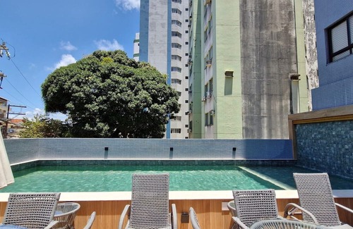 Beautiful, new, air-conditioned studio, very well located in Federação! It has a double bed, kitchen, split air conditioning, a smart TV with open channels, and WI-FI. The building has a swimming pool, coworking space, and a gym. 24-hour reception and 1 rotating parking space (you cannot park in spaces with exclusive signs). Laundry service with additional charge. Market across the street.