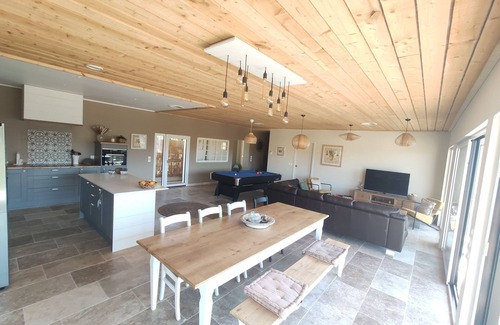Relájate en la piscina al aire libre de esta casa de vacaciones de 250 m², o tómate algo en el jardín. Además, podrás disfrutar de un porche o patio y de muebles de exterior. En cuanto al interior, puedes poner a prueba tus habilidades jugando al billar, o disfrutar del wifi gratis, de la televisión por satélite o cable y del reproductor estéreo.
