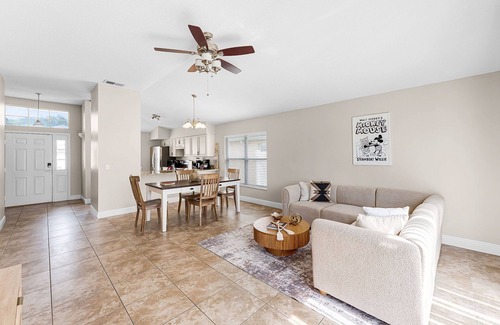 Relax with the whole family at this peaceful vacation home. Fully equipped kitchen, themed room, free wi-fi, foosball, and more. This spacious home has room to spare for all family members with a warm private pool, seating, and sleeping for everyone. It is up to date on cleaning protocols and always prepared. This home is 10/15 minutes from Disney World Parks, 15/20 minutes from Disney Springs, and 20/30 minutes from Universal Theme Parks.