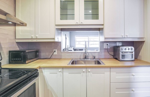 Al instalarte en este alojamiento de 1 dormitorio y 1 baño, encontrarás un comedor y aire acondicionado. Conéctate al wifi, o relájate frente a la televisión por cable o satélite. La cocina está equipada con placa de cocina y frigorífico, además de cafetera y tetera, microondas y utensilios de cocina. Y como hay acceso a una lavandería, no necesitarás llevarte mucho equipaje. Otras comodidades incluyen ropa de cama y una mesa de comedor.